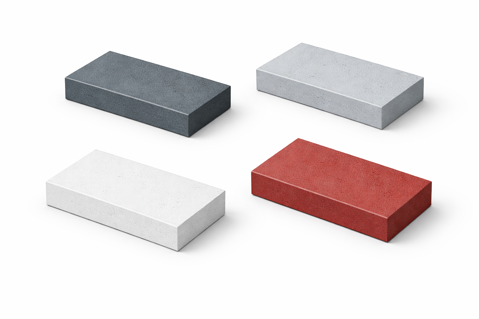 Próbki czterech kolorów podstawowych z naszej oferty o wymiarach około 10x15x4cm. Najlepsza opcja by upewnić się co do realnego koloru oraz faktury obrzeży. Najbliższe kolorystycznie w palecie RAL są dla kodów: RAL 7016, RAL 7040, RAL 9003, RAL 3013.